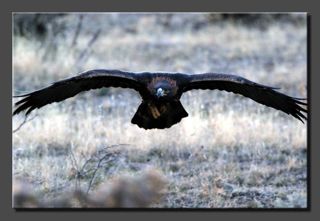 Catching this Golden Eagle in flight was both exhilirating and frustrating! The sun was announcing