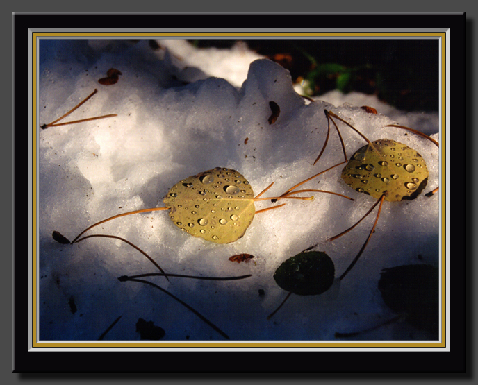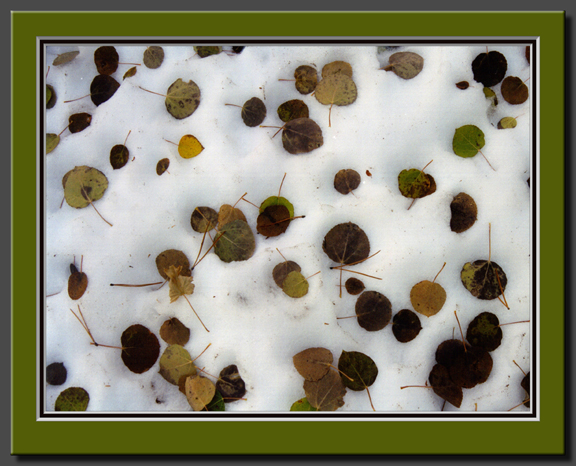This is the shot of the whole snow bank, where the aspen leaves had fallen for the winter.